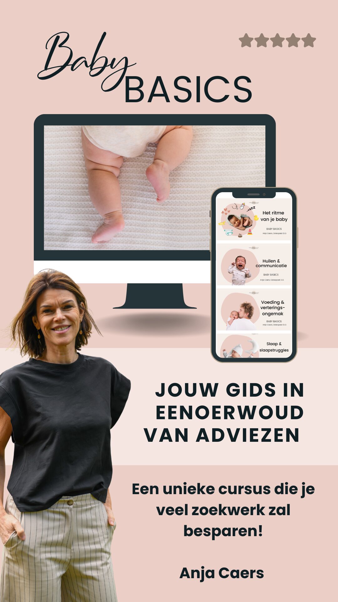Ik ben Anja Caers, al meer dan 25 jaar baby-osteopate, docent en spreker. Mijn passie om baby's beter te begrijpen ontstond vanuit mijn eigen zoektocht als mama. Na vele opleidingen en na duizenden baby's te hebben behandeld, ben ik steeds meer typische baby-patronen gaan herkennen. Omdat ik zo vaak hoorde: "Je geeft zoveel waardevolle tips! Waar kan ik deze nalezen?", besloot ik alles te bundelen. Zo ontstond 'BABY BASICS', dé online babyhandleiding waarmee ik ouders de lange zoektocht wil besparen die ik zelf destijds maakte.